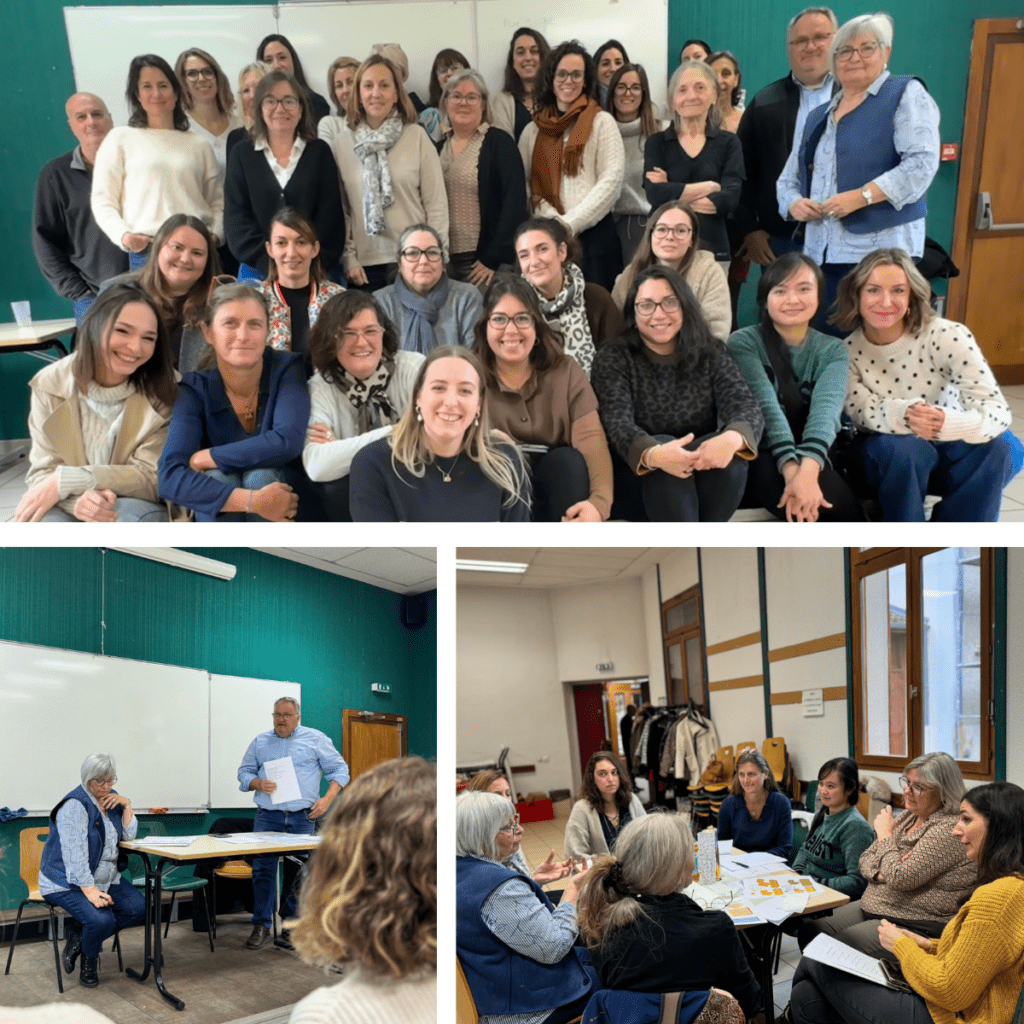 Responsables de secteur, assistantes admin, services supports, direction, présidente et bénévoles : près de 30 personnes ensemble pour une matinée de séminaire.